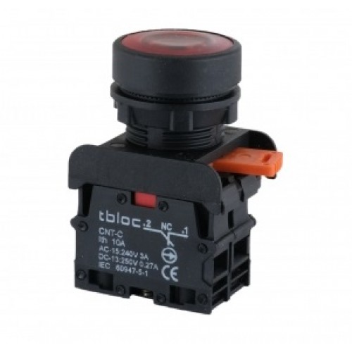 8025078022, Кнопка 22мм с возвратом 1 Н.З. (красный) с индикацией LED 220 V AC/DC; PSRL-1C 220 (упак 15 шт.)