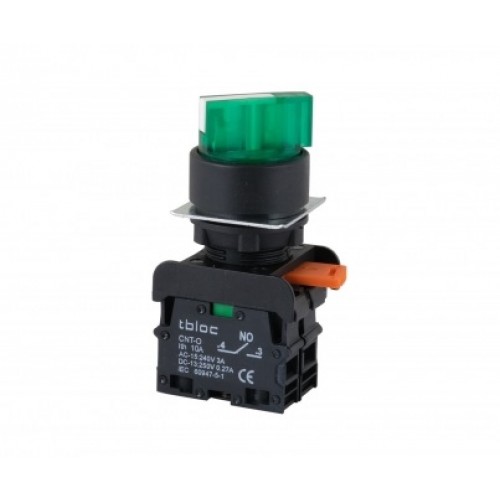 8025078405, Переключатель 22мм мгновенного действия 1 Н.О. (1-0) 90град. (зеленый) с индикацией LED 220 V AC/DC.; SSM-1O 220 L (упак 12 шт.)